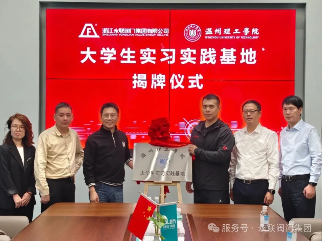 2025年10月27日下午,浙江永联阀门集团有限公司与温州理工学院数据科学与人工智能学院隆重举行“大学生实习实践基地”揭牌仪式。仪式在我司会议室举办,由我司总经理沈民侠与温州理工学院数据科学与人工智能学院项阳阳博士共同揭牌。联通龙湾分公司副总经理卢震宇、管阀通公司总经理沈敏及永联阀门集团相关负责人等嘉宾出席仪式,共同见证了这一深化校企合作的重要时刻。